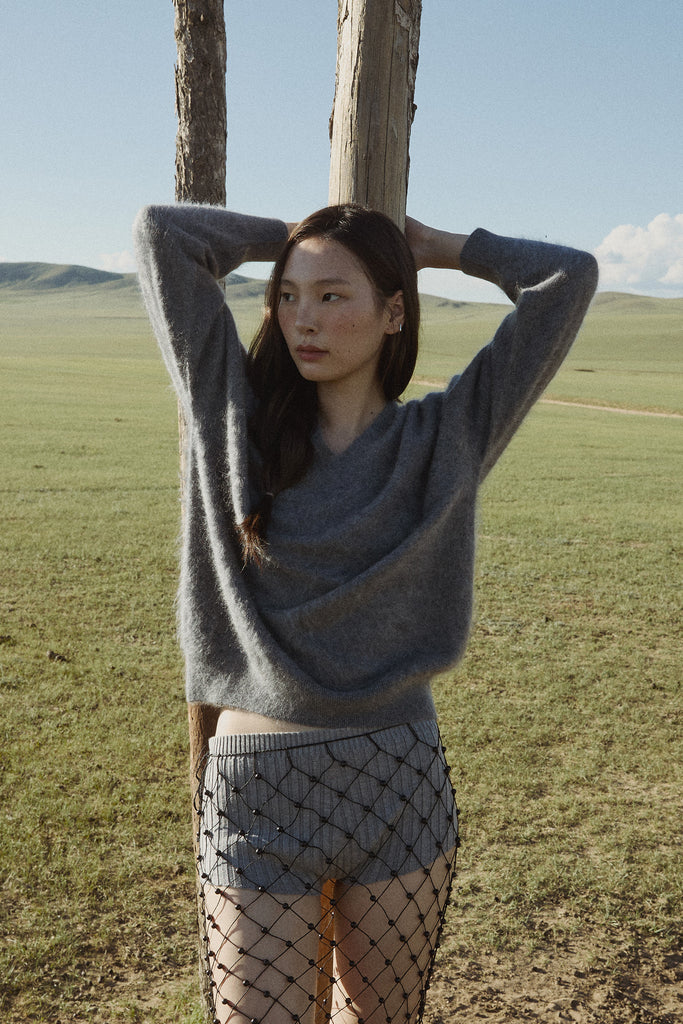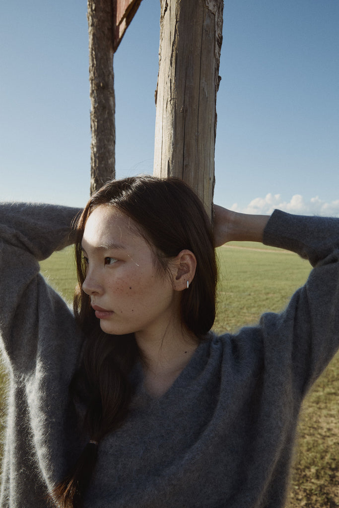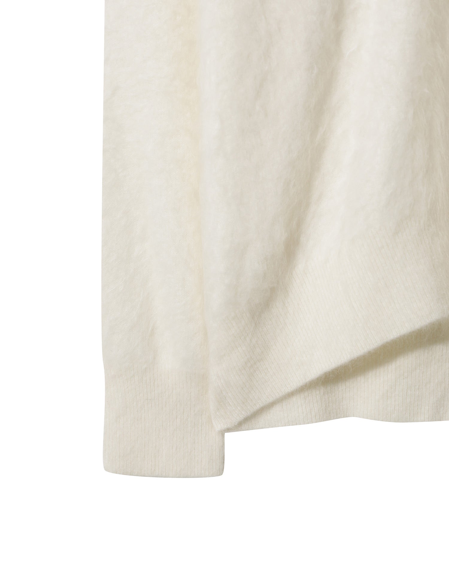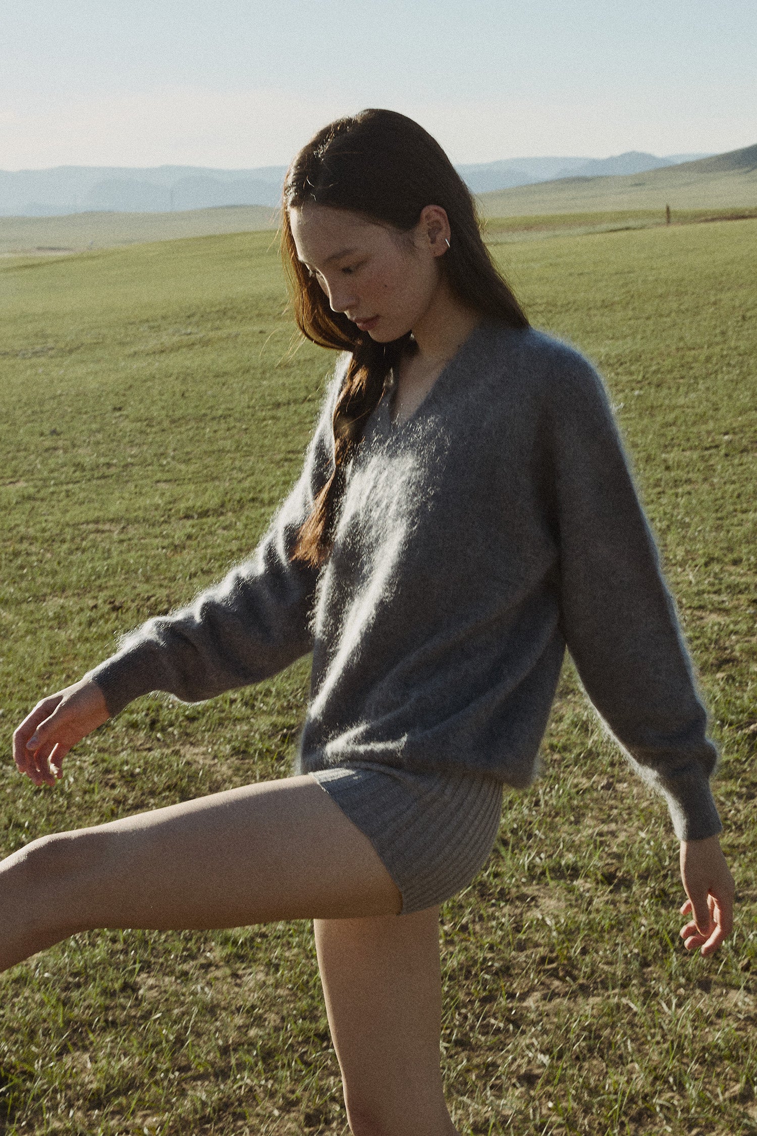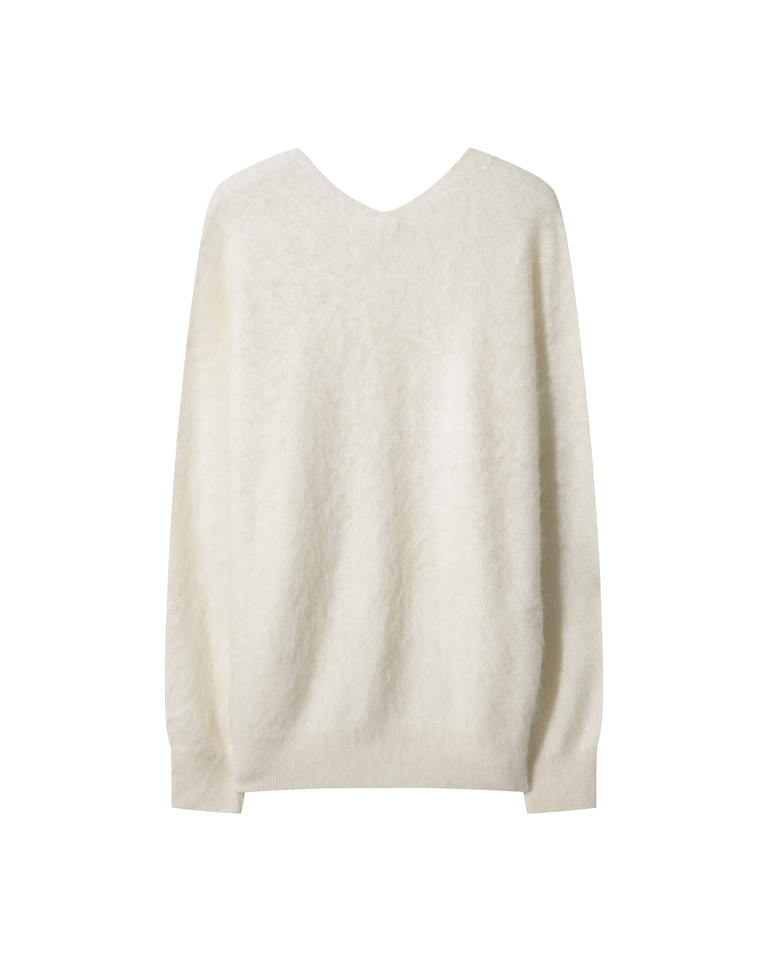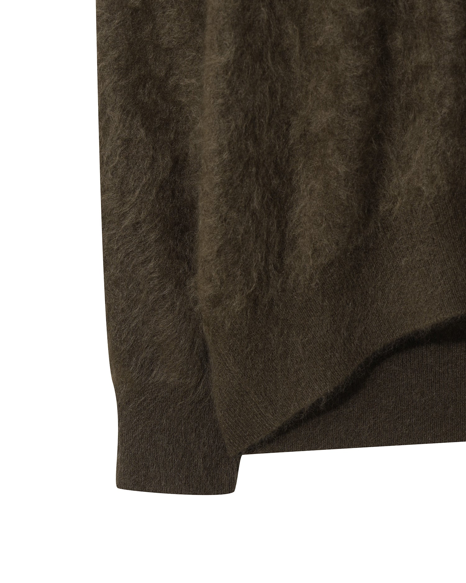 Discover a new kind of softness. Made from 100% Mongolian cashmere and brushed for a cloud-like touch that feels gentle even on sensitive skin. Designed with a relaxed, loose silhouette, it drapes effortlessly for an easy, comfortable fit. The rich, fuzzy texture adds a cozy edge to everyday dressing.