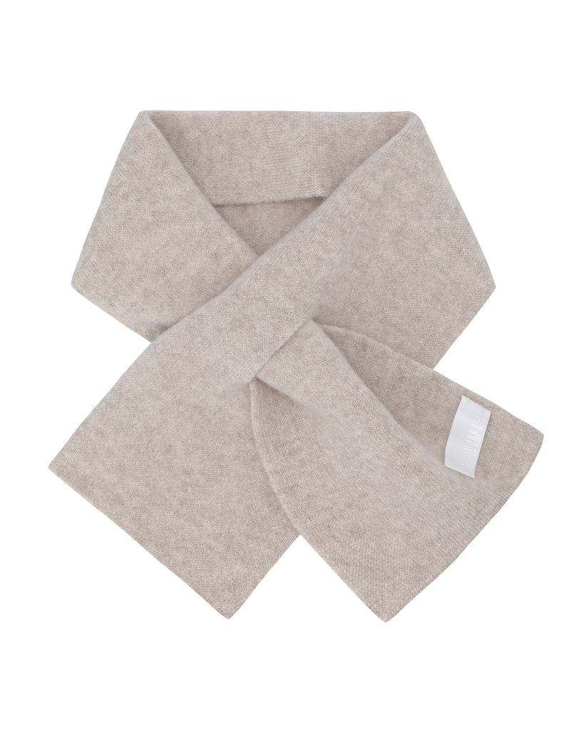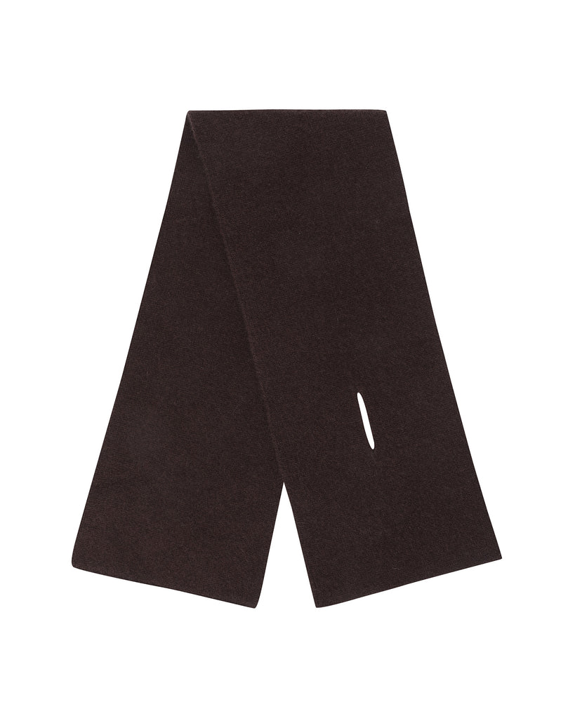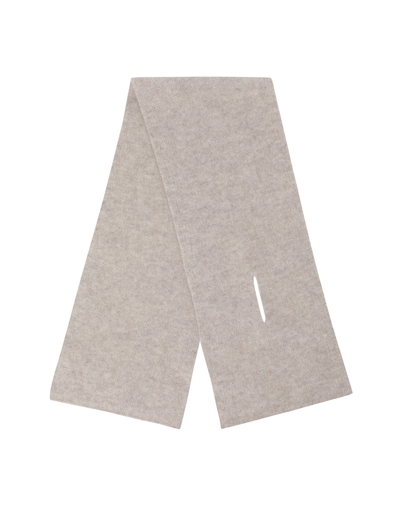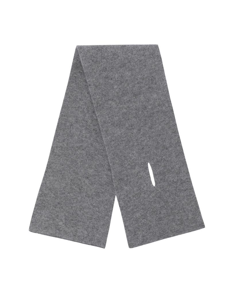 A compact petite scarf that’s easy to carry anywhere. Crafted from 100% Mongolian cashmere with a soft, cozy feel. Double-layer knitted for minimal shape and extra warmth. Finished with a clean silhouette and a front slit that lets you slip one end through for effortless styling.