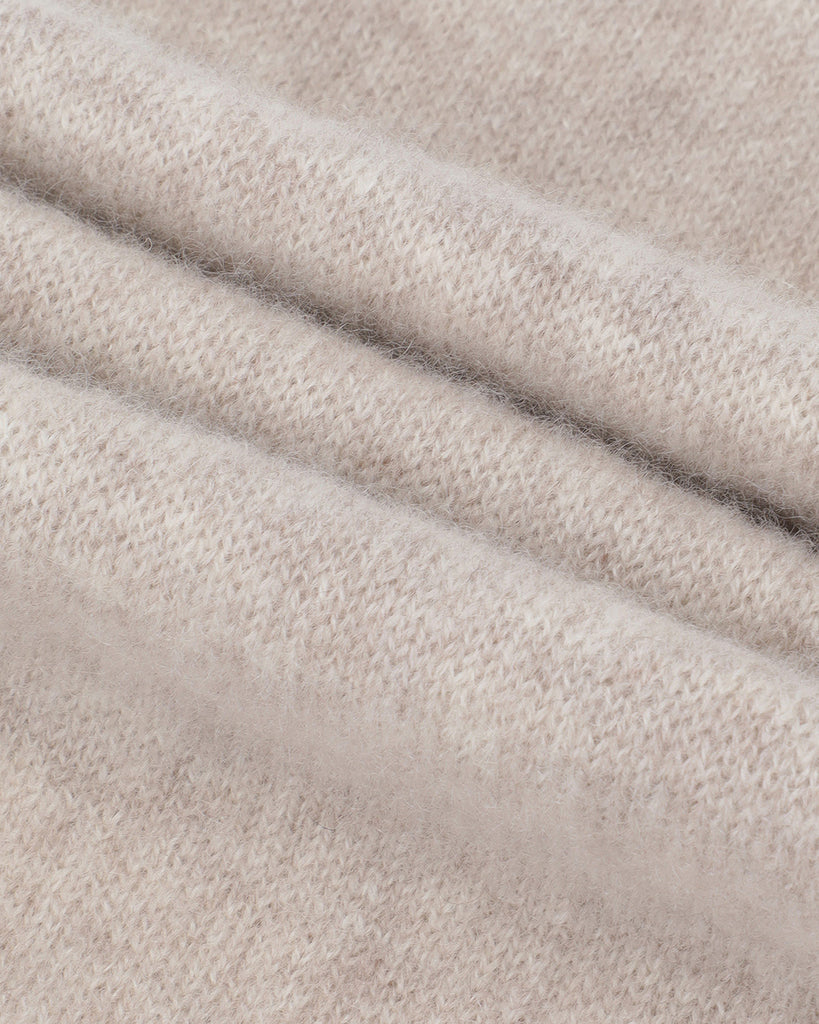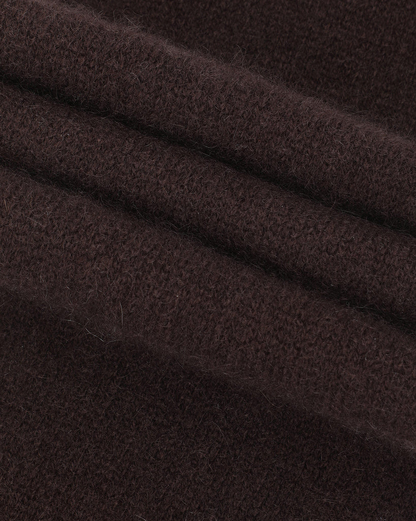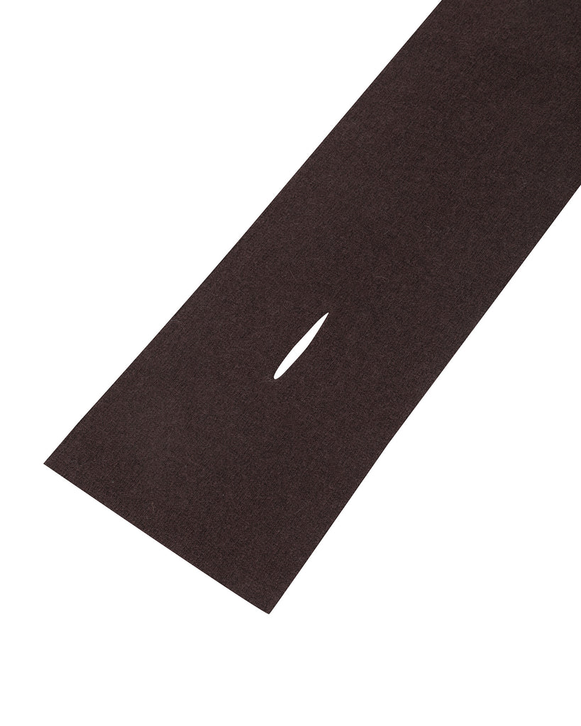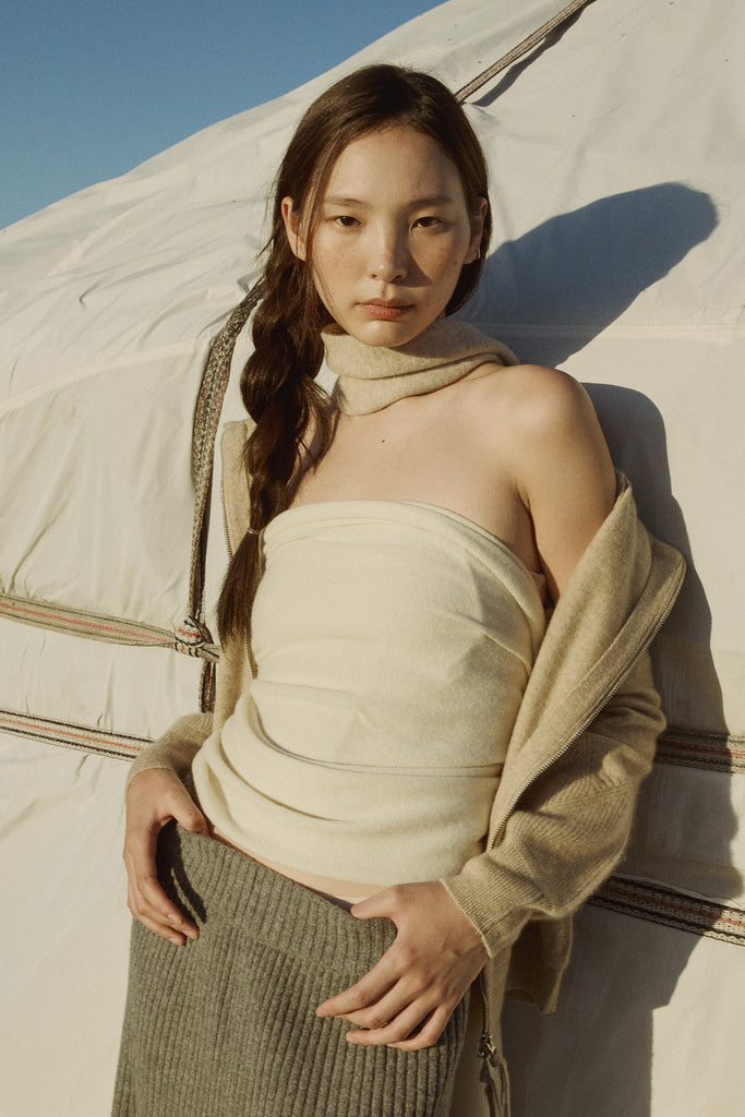 A compact petite scarf that’s easy to carry anywhere. Crafted from 100% Mongolian cashmere with a soft, cozy feel. Double-layer knitted for minimal shape and extra warmth. Finished with a clean silhouette and a front slit that lets you slip one end through for effortless styling.